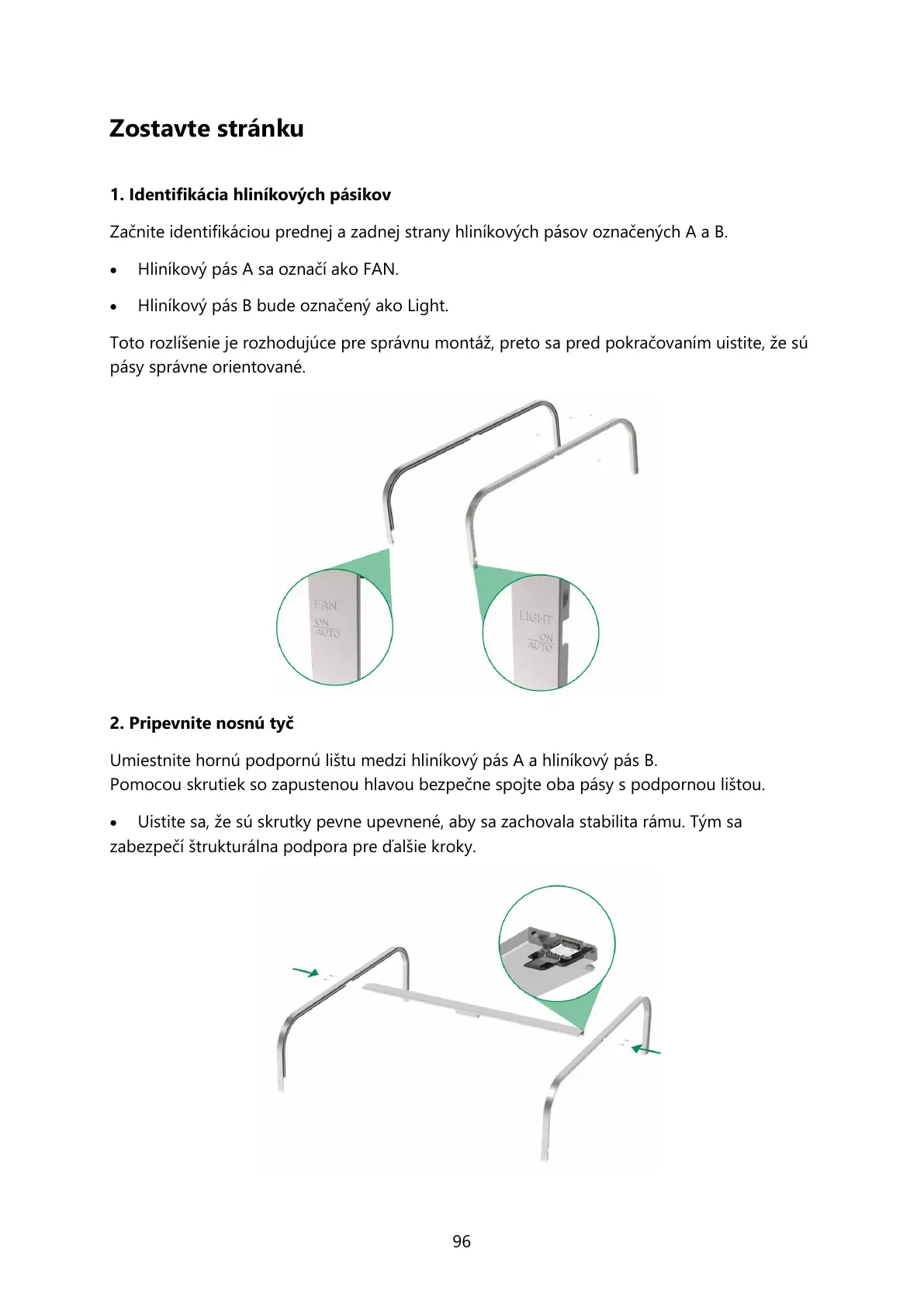 Pomocou skrutiek so zapustenou hlavou bezpečne spojte oba pásy s podpornou lištou.