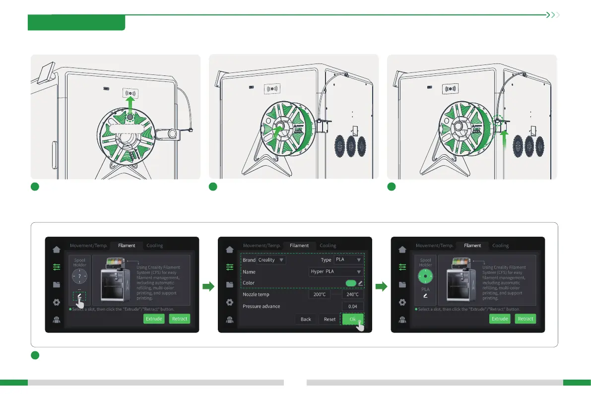 Hang the lament on the spool holder;If the laments suppo RFID recognition, align the