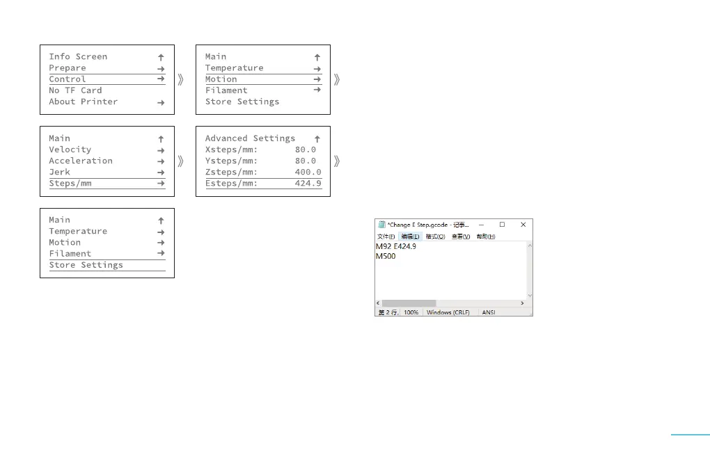 若机器不支持将 Esteps 数值调节到 424.9,可通过以下四步调节: