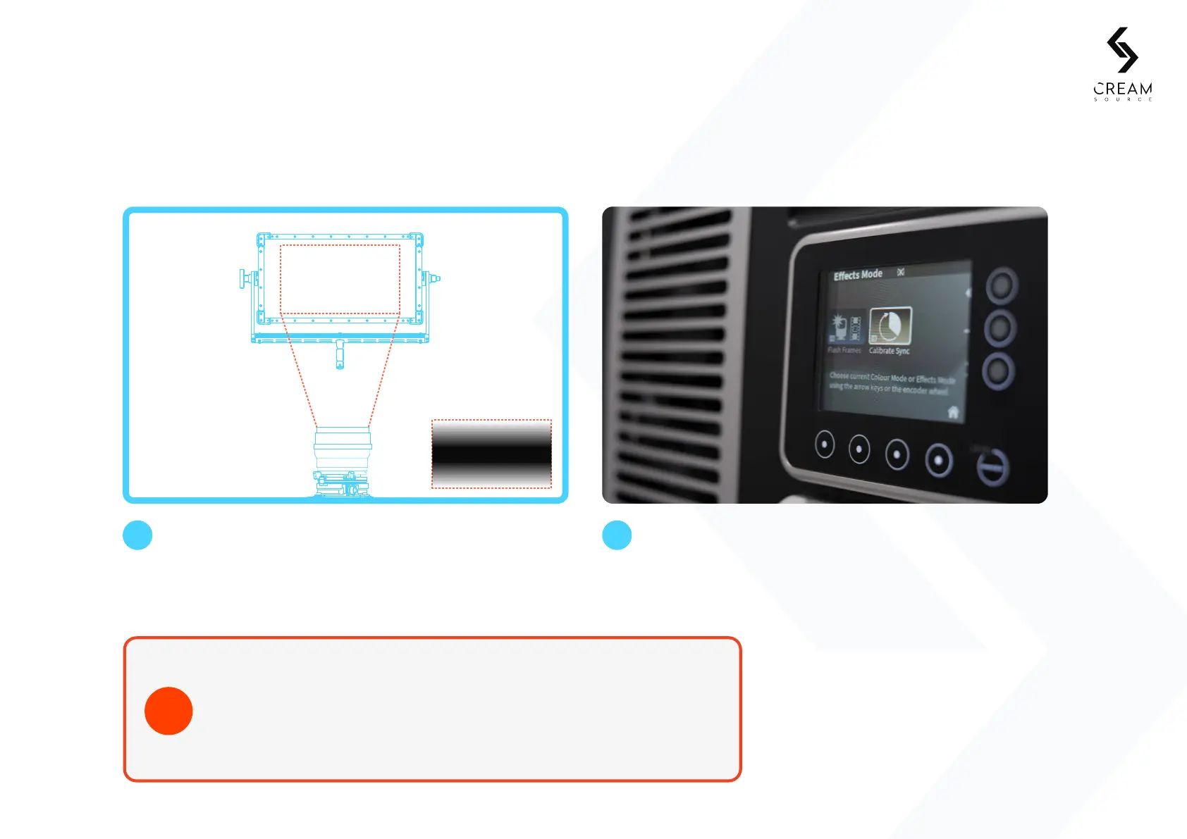 shutter and Creamsource are synchronised, to prevent the flash-banding eects when shooting on a CMOS sensor camera.