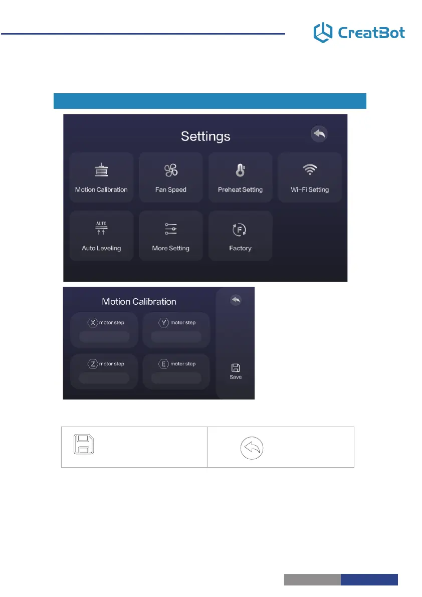 CreatBot D600 Pro 2 - Printer Operation: Settings Menu; Motion Calibration