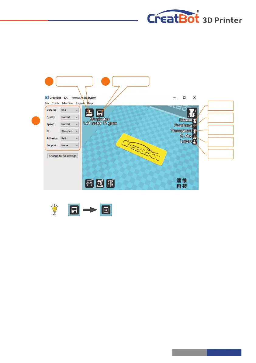 Insert U-disk to the card reader, open the CreatWare, load 3D