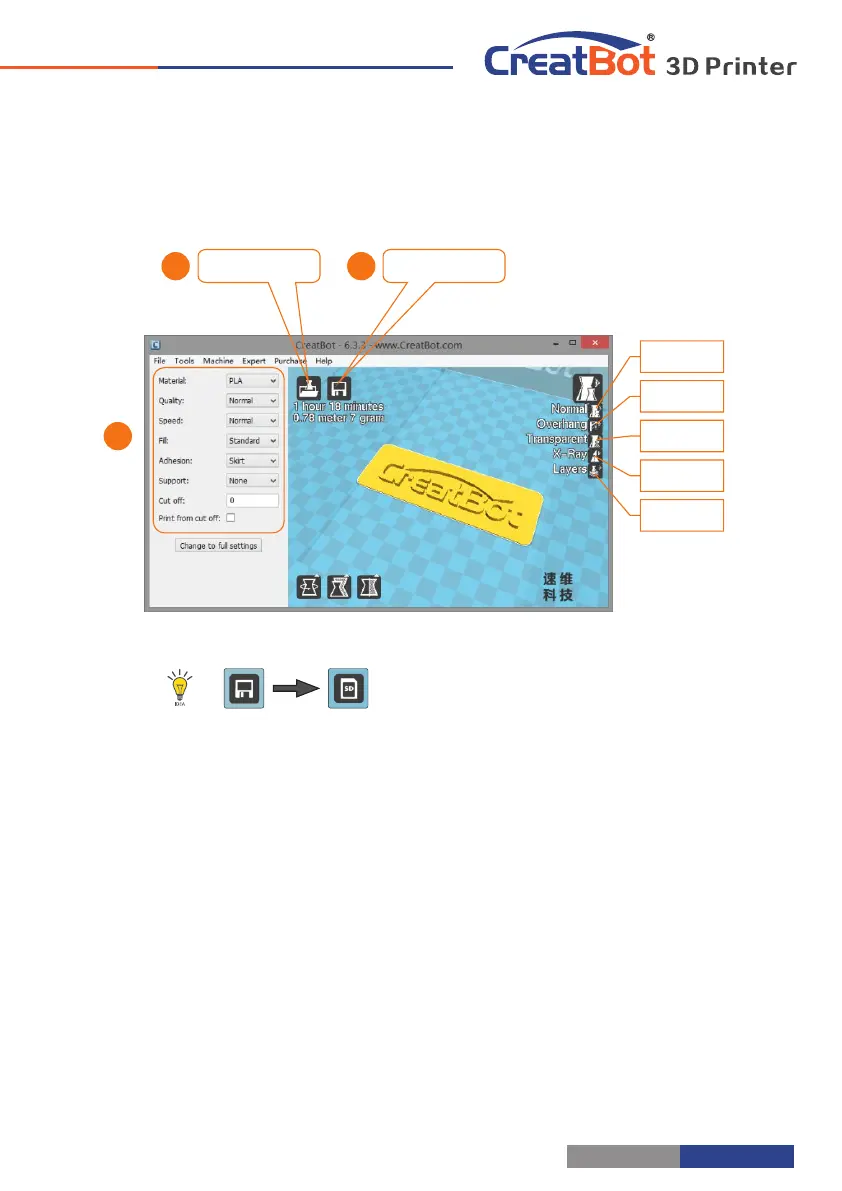 Insert SD card to the card reader, open the CreatWare, load 3D