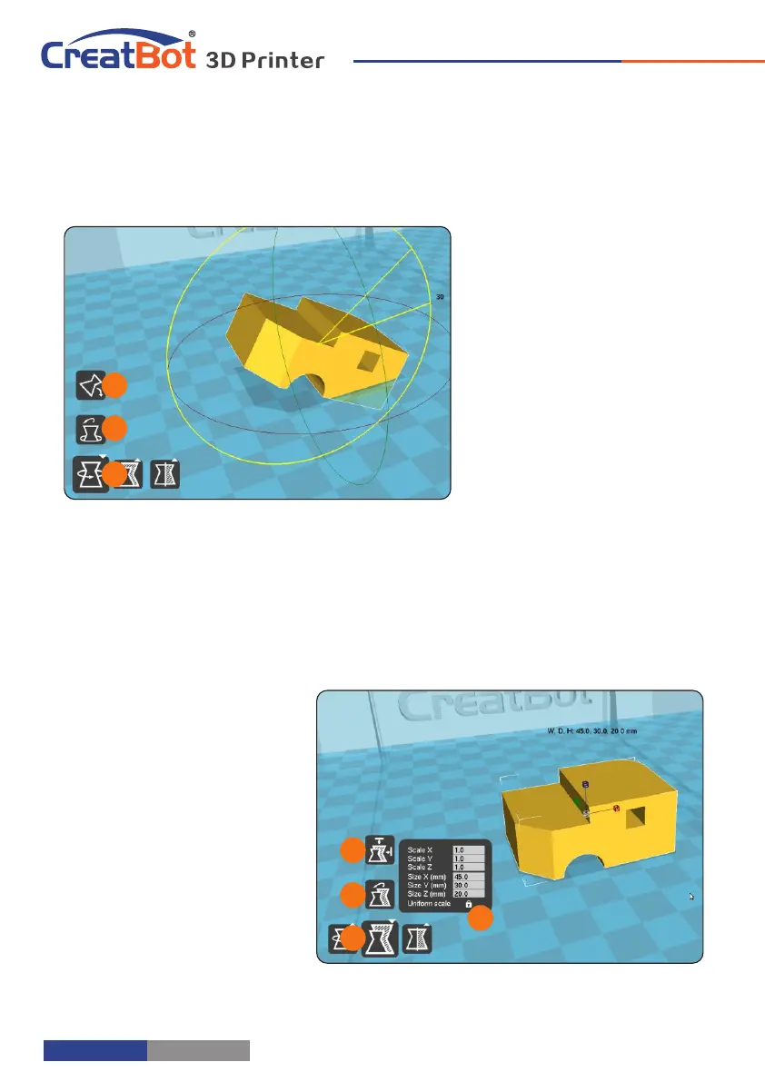 CreatBot DX - Software Operation; Model Rotate; Model Scale