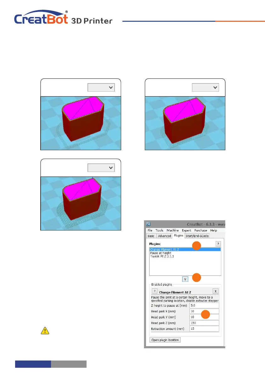 CreatBot DX - Software Operation; Skirt, Brim, and Raft; Plugins