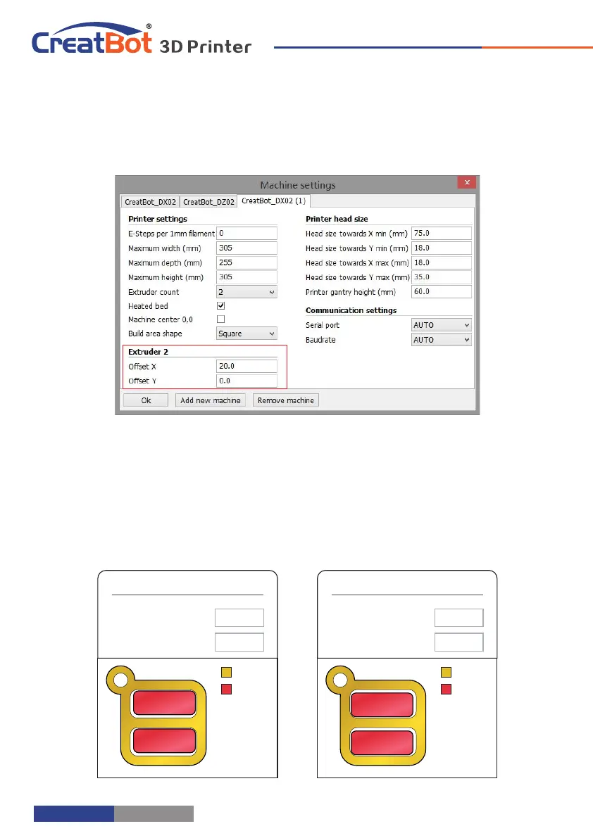 CreatBot DX - Software Operation; Align Dual Head Horizontal