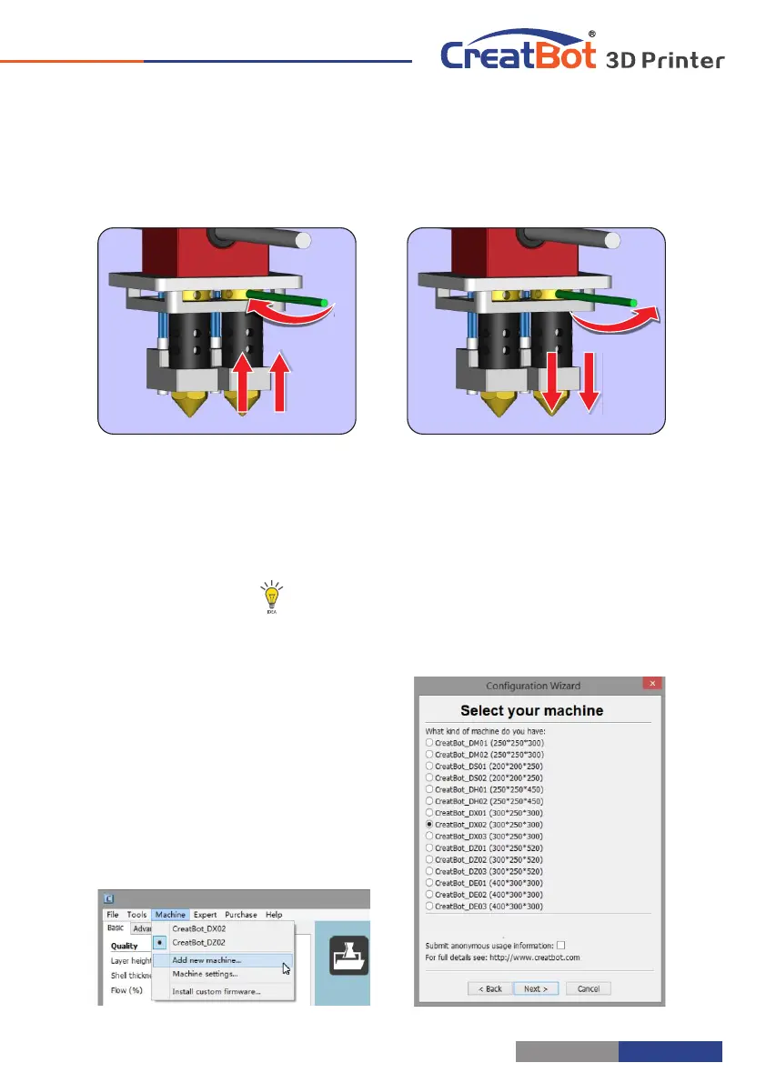 Step 1: Raised the right nozzle. Rotate left to raise the head, rotate right to