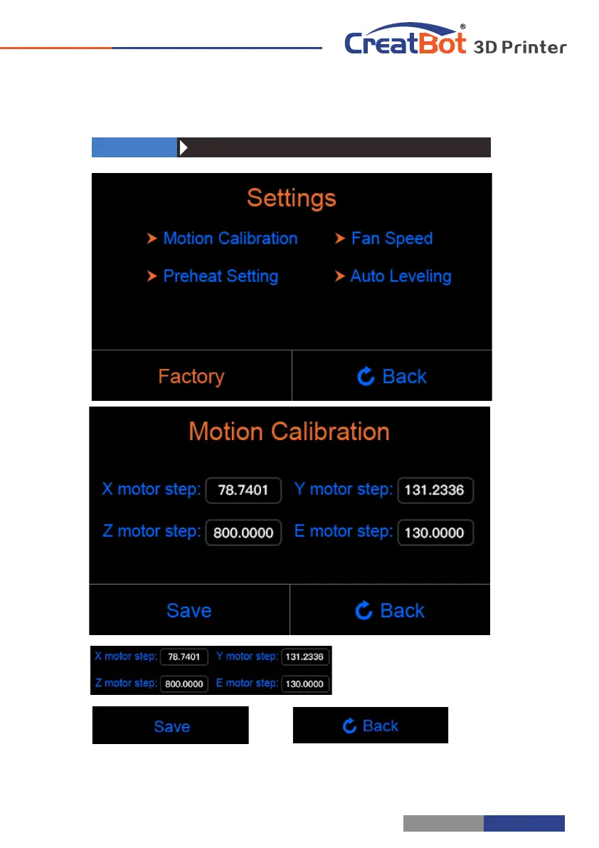 CreatBot F430 - System Configuration and Calibration; Accessing System Settings Menu; Motion Calibration Parameters