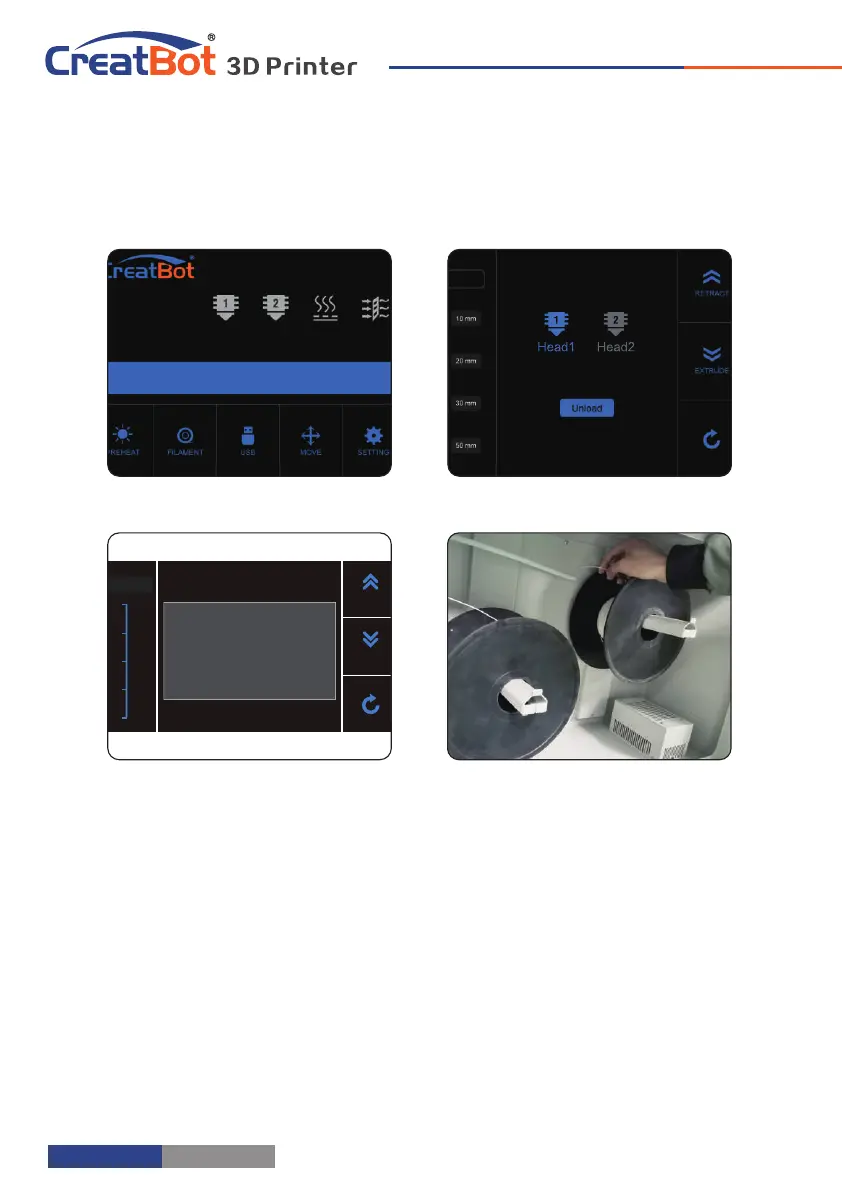 1. Enter "Filament" menu ->"Unload filament", and select the head you