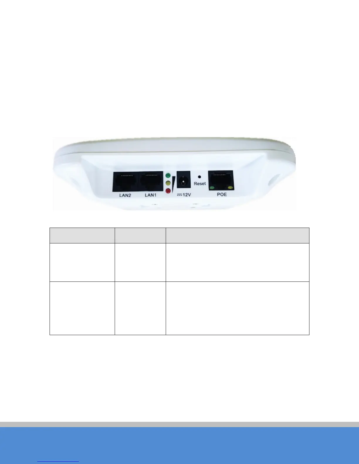 As shown on the picture, the first left LED indicator for the LAN , the second from the left