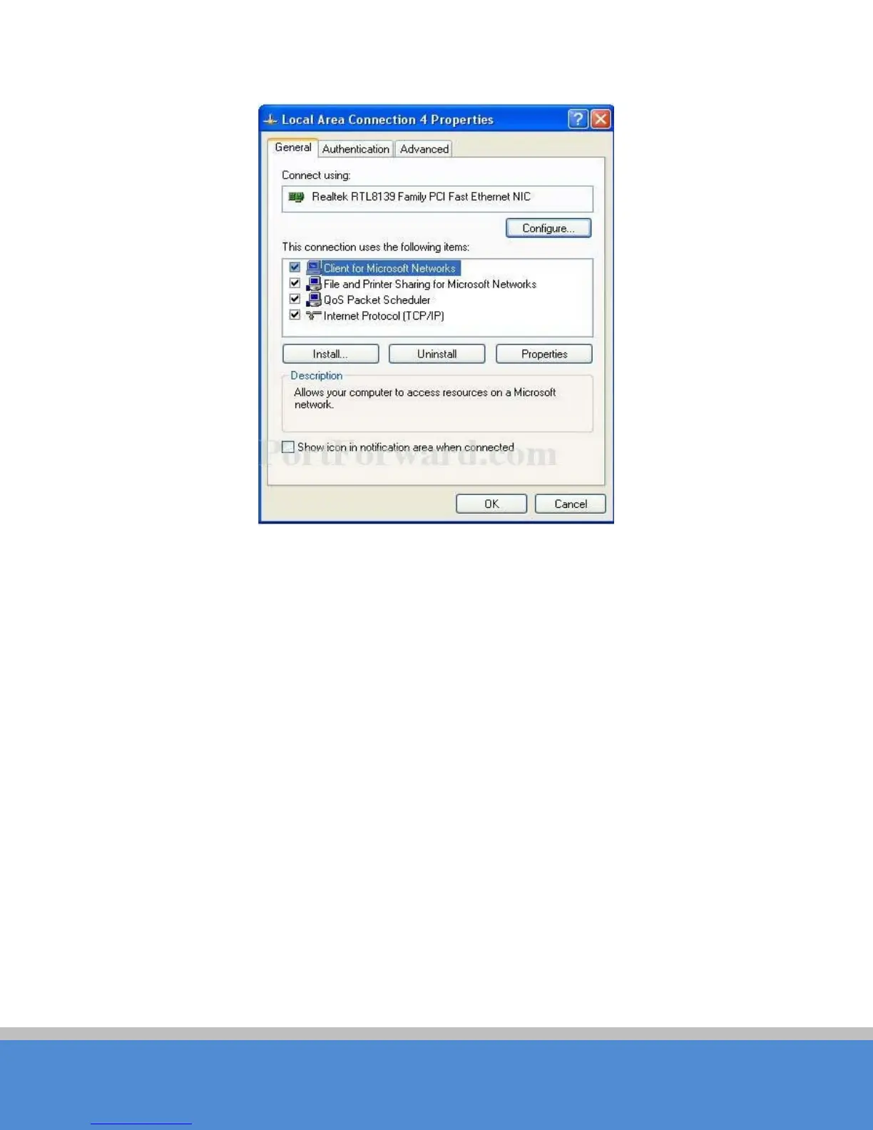 2Select Internet P ro to c o l (TC P /IP ) and click P ro p erties b utto n, and the fo llo win g d ialo g