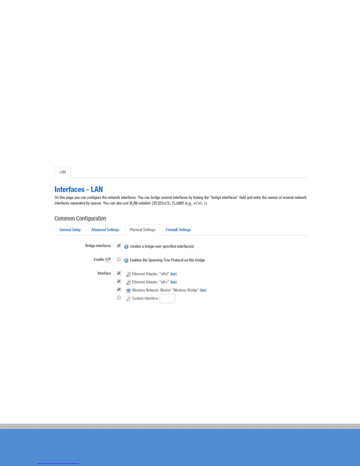 Bridge interfaces: creates a bridge over specified interface(s). unchecking the Bridge