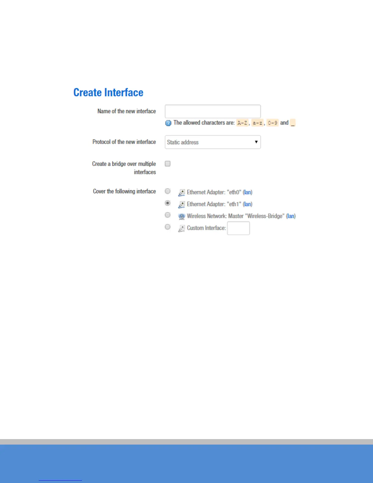 Fill in the name of the new interface, such as LAN2, select the Ethernet adapter eth1