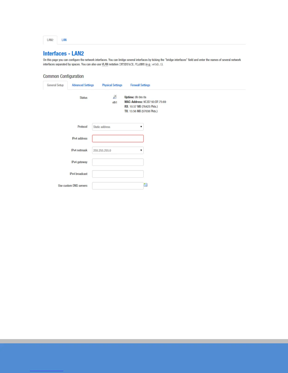 WAN. Please refer to the manual 7.1.1 Ethernet adapter "eth1" removed from the LAN