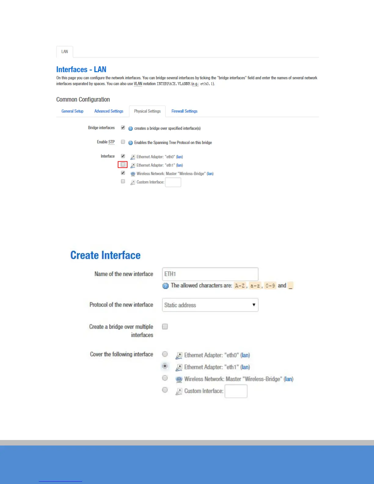 Click the "Add new interface" of the Interfaces page, and fill in the name of the new