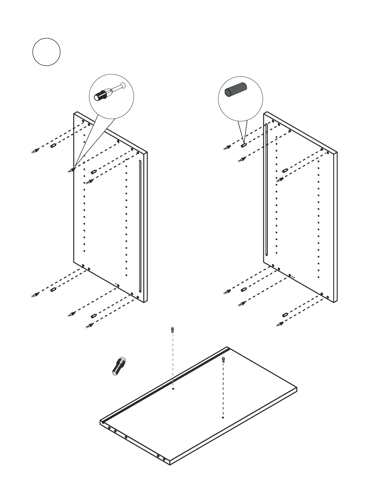 Start by assembling your hardware in the Side 1, Side 2 and Base panels. Locate
