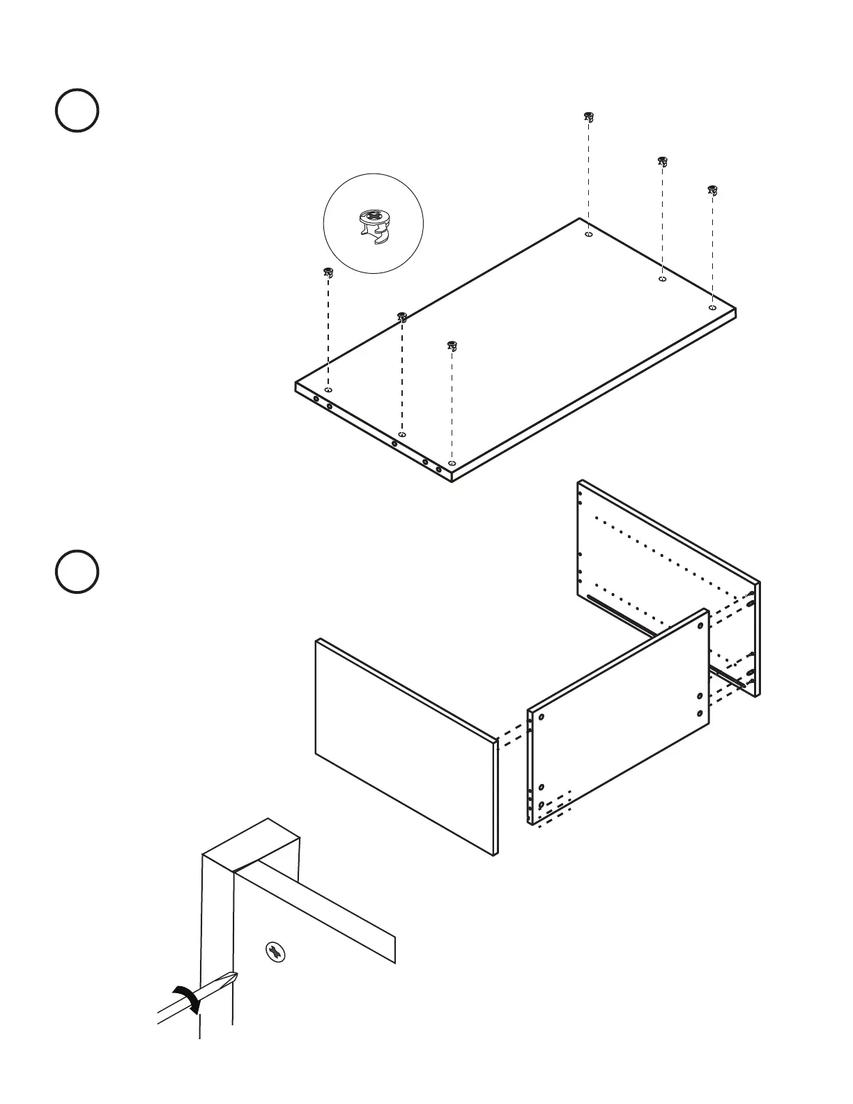 Connect Side 1 and Side 2 with the Base, one at a time by