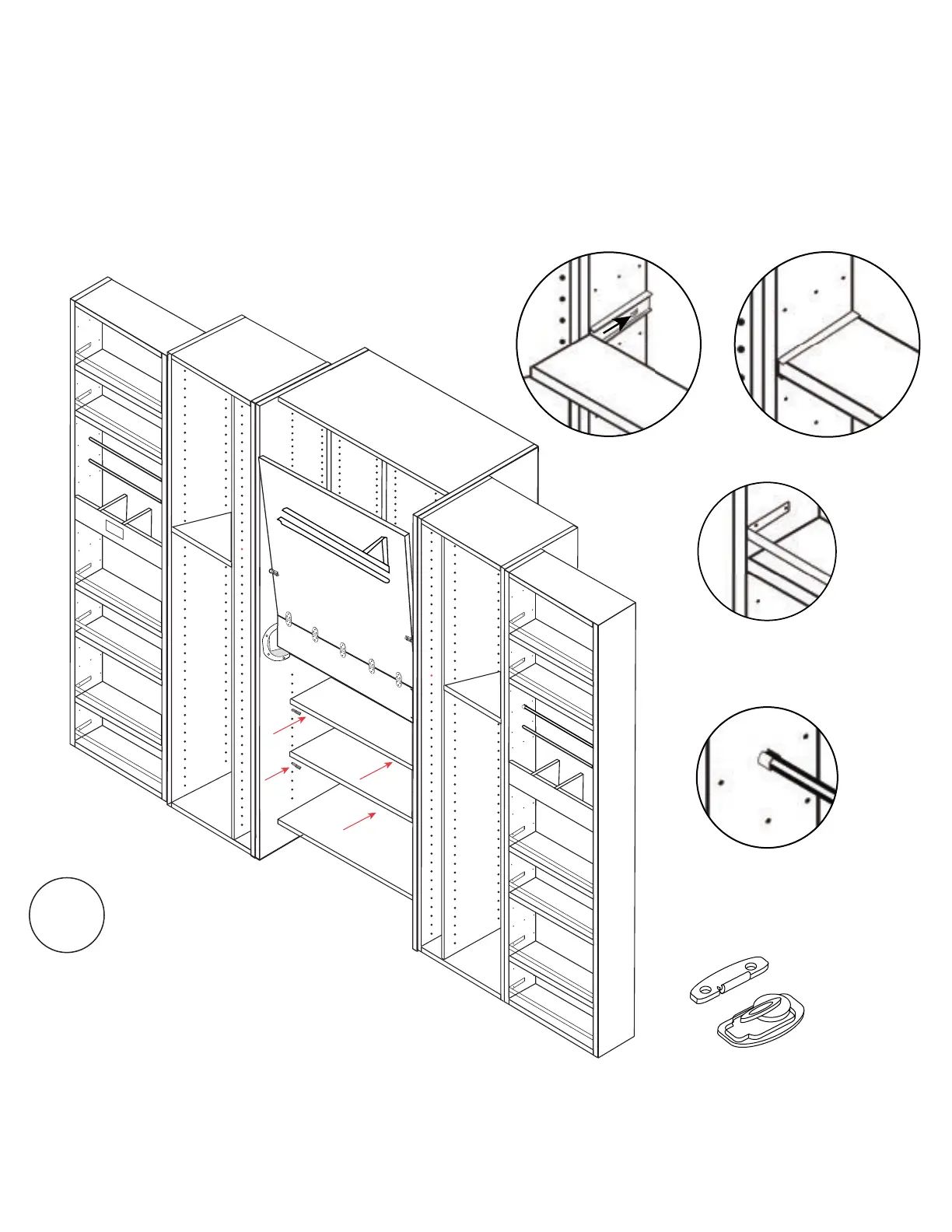 0.5” Adjustable Shelf (CB Middle Shelf), (4) Standard 0.5” Adjustable Shelf