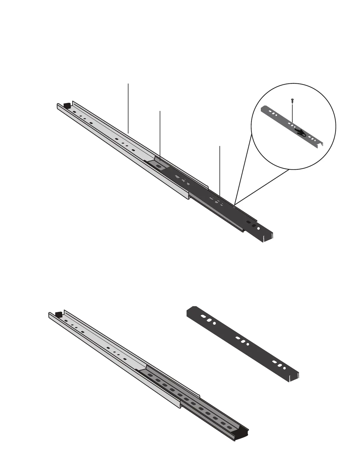 Remove inner track of Guide Rails by pressing black lever and sliding inner track free.