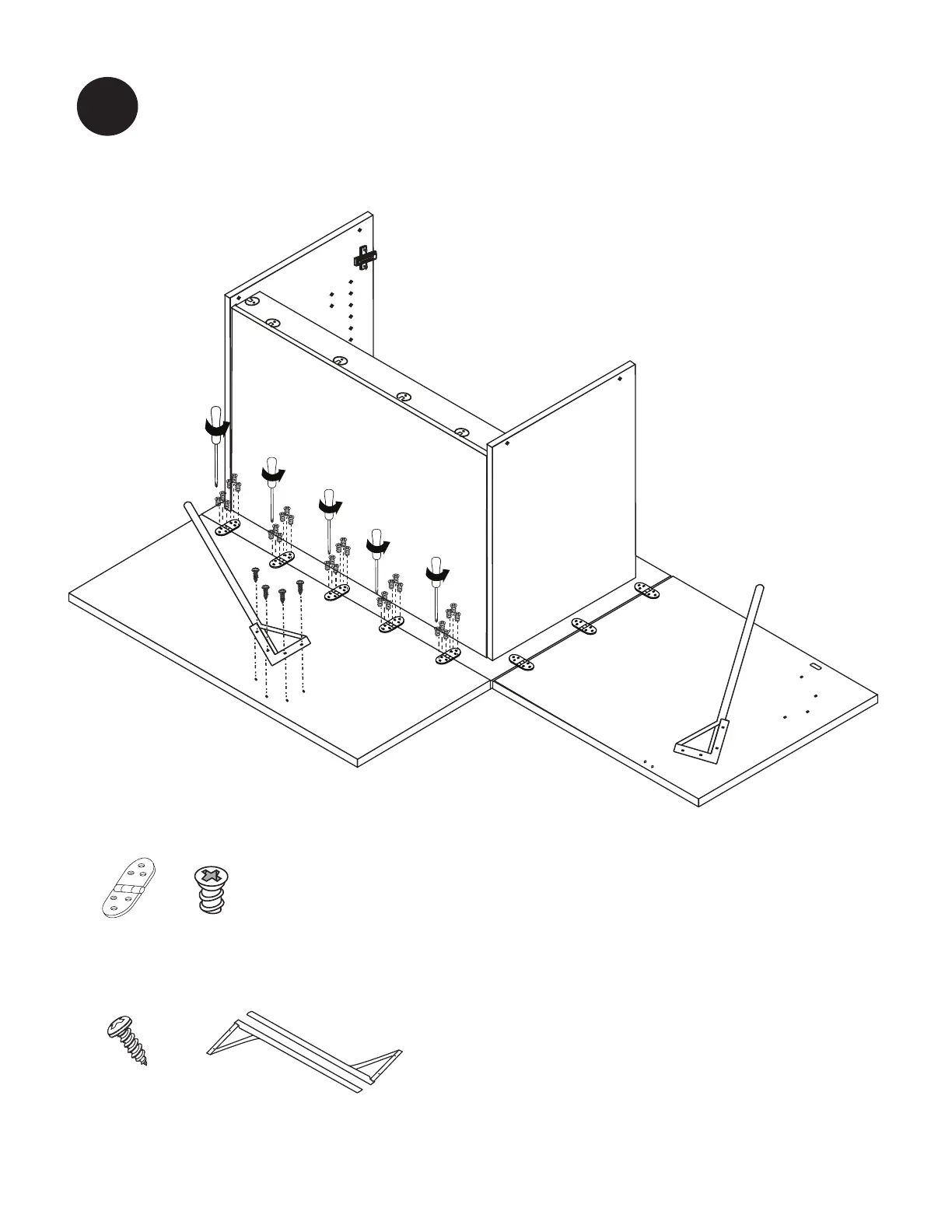 Attach Sewing Back Table, Table Leg, and Standard Hinges using predrilled holes to guide you.