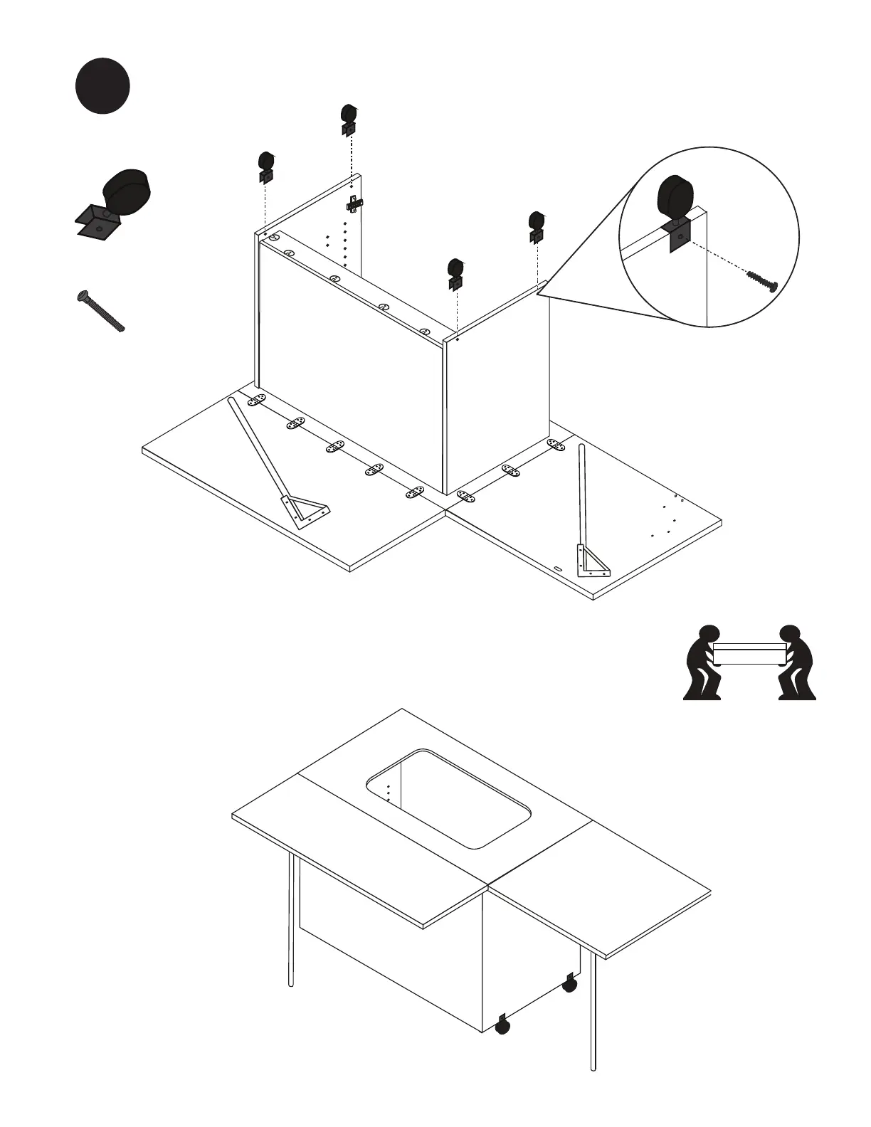 Carefully flip Sew Station onto all 4 Side U-Wheels. Extend both table legs to prevent damage.