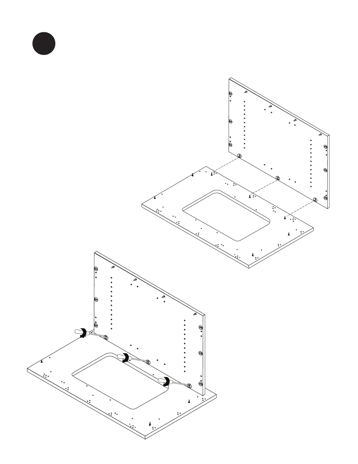 Note: Use phillips head screwdriver at a slight angle to tighten built in cams.