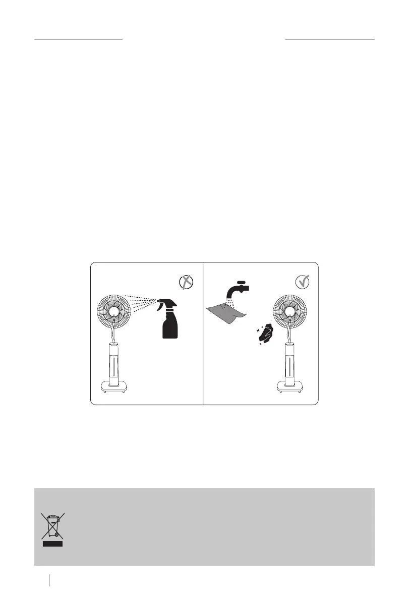 • Zorg ervoor dat de opslagplaats schoon en vochtvrij is als u de ventilator langere tijd niet
