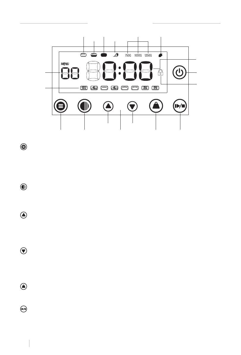 CARDÁPIO: Com o botão de menu, você pode navegar pela tela LCD entre os 12 progra-