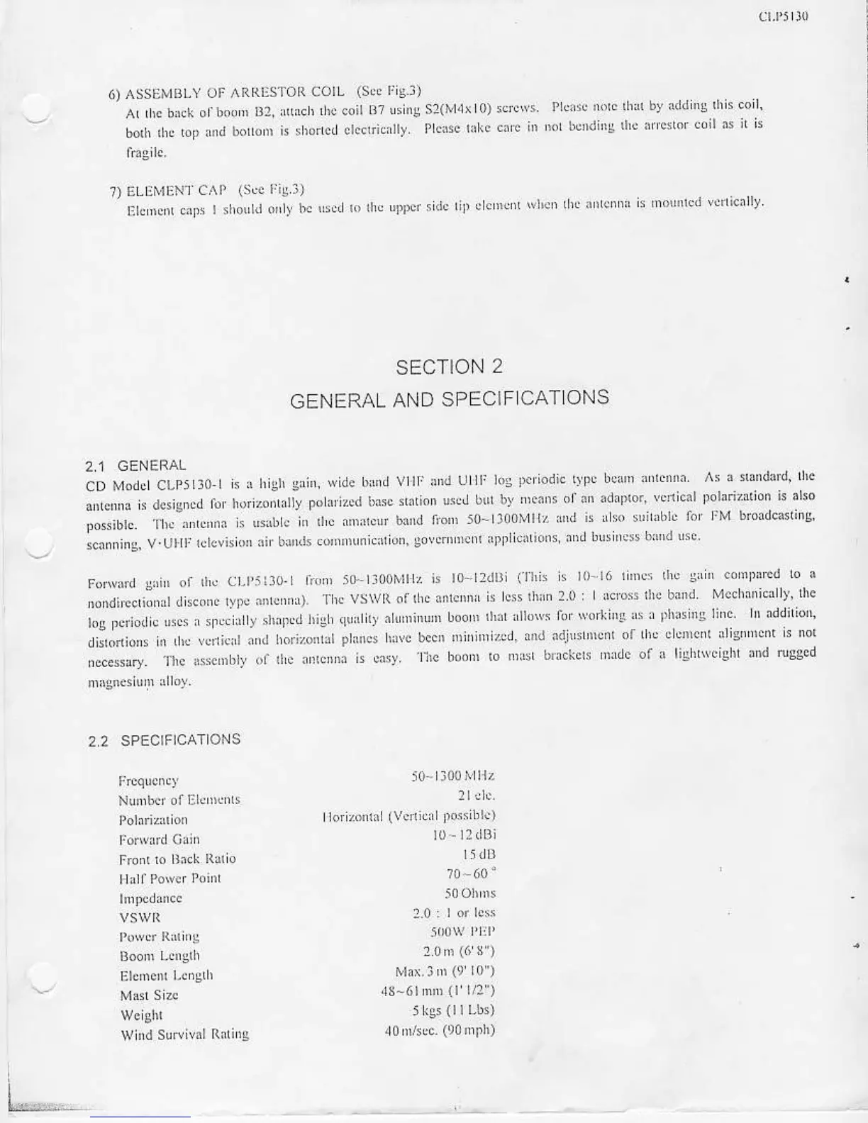 Create CLP5130-1 - Section 2 General and Specifications; 2.1 General; 2.2 Specifications