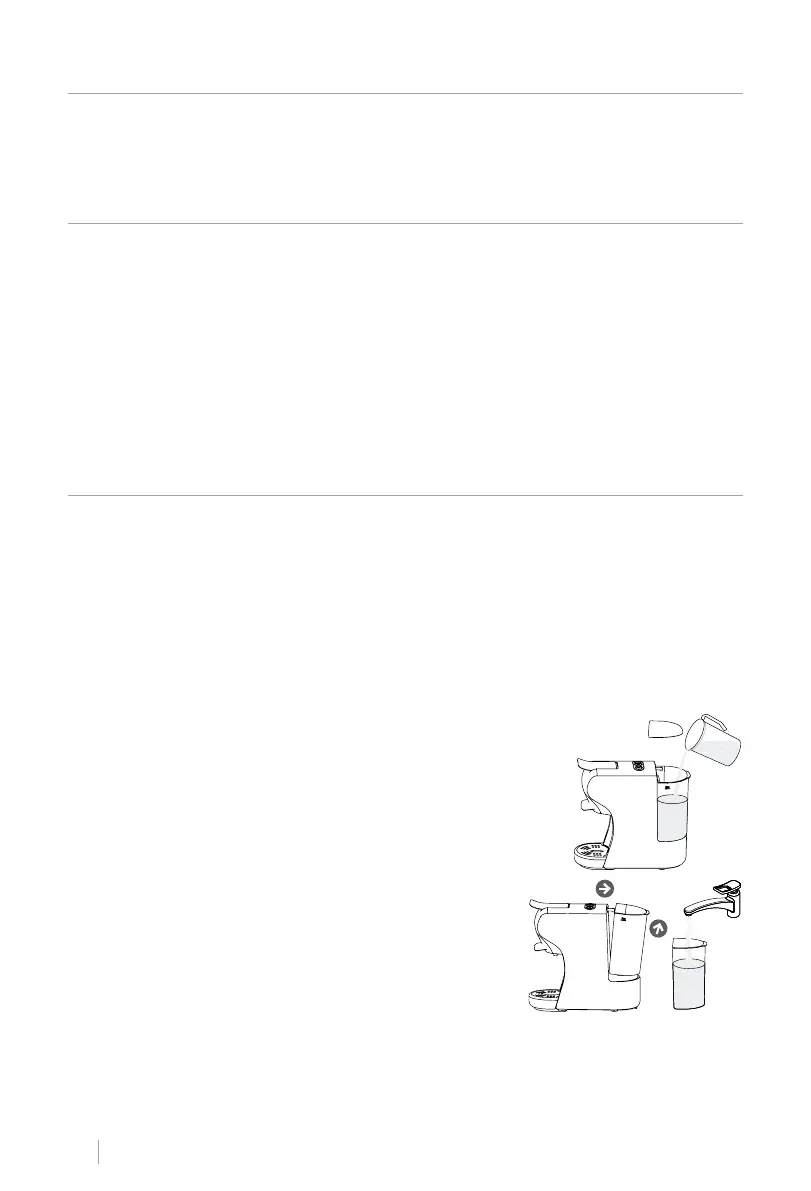 • Enxágue bem o tanque de água com água limpa antes do primeiro uso.