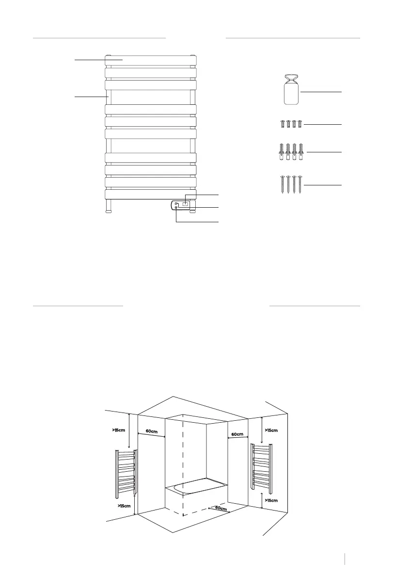 Das Gerät muss mindestens 60 cm von einer Badewanne oder Dusche entfernt aufgestellt