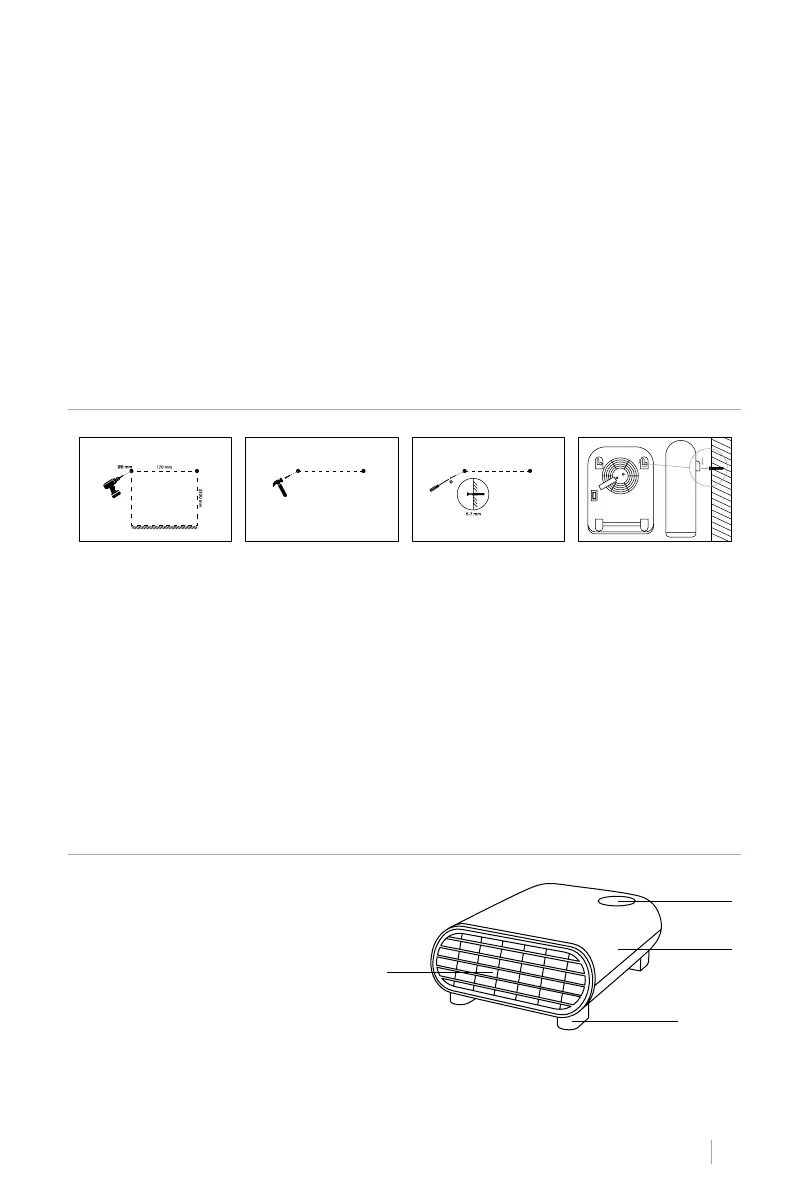 Warning: Before using the heater, make sure it is securely mounted on the wall.