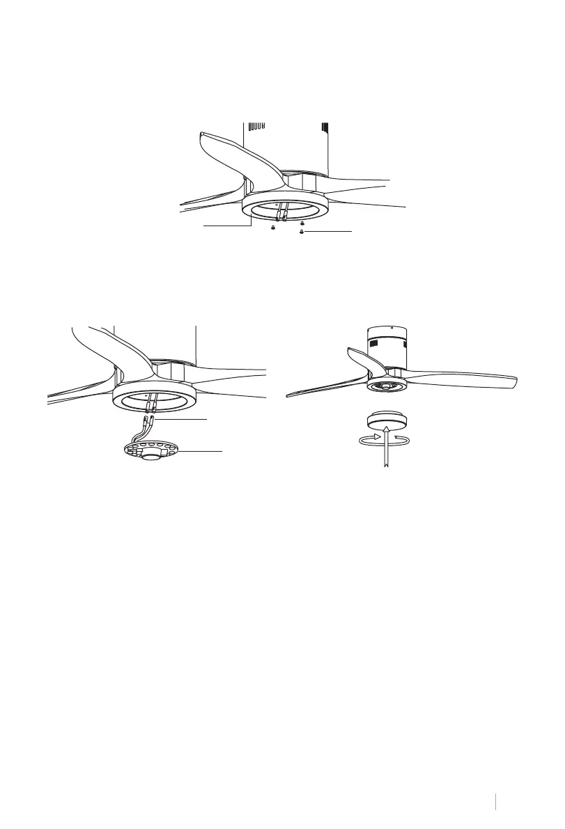 Attach the connections plate up to the bottom of the fan by inserting the set screw heads