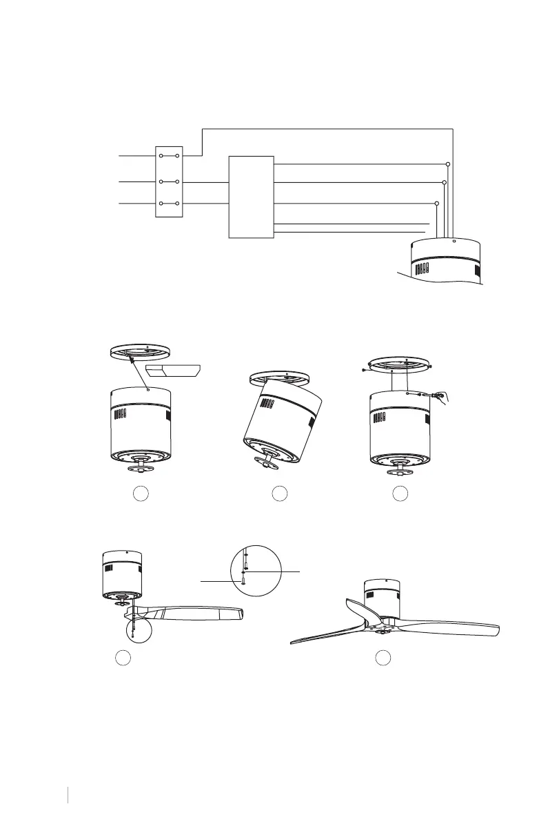 di installare le pale. Allineare i fori delle pale con i fori delle viti del motore. Fissare le viti