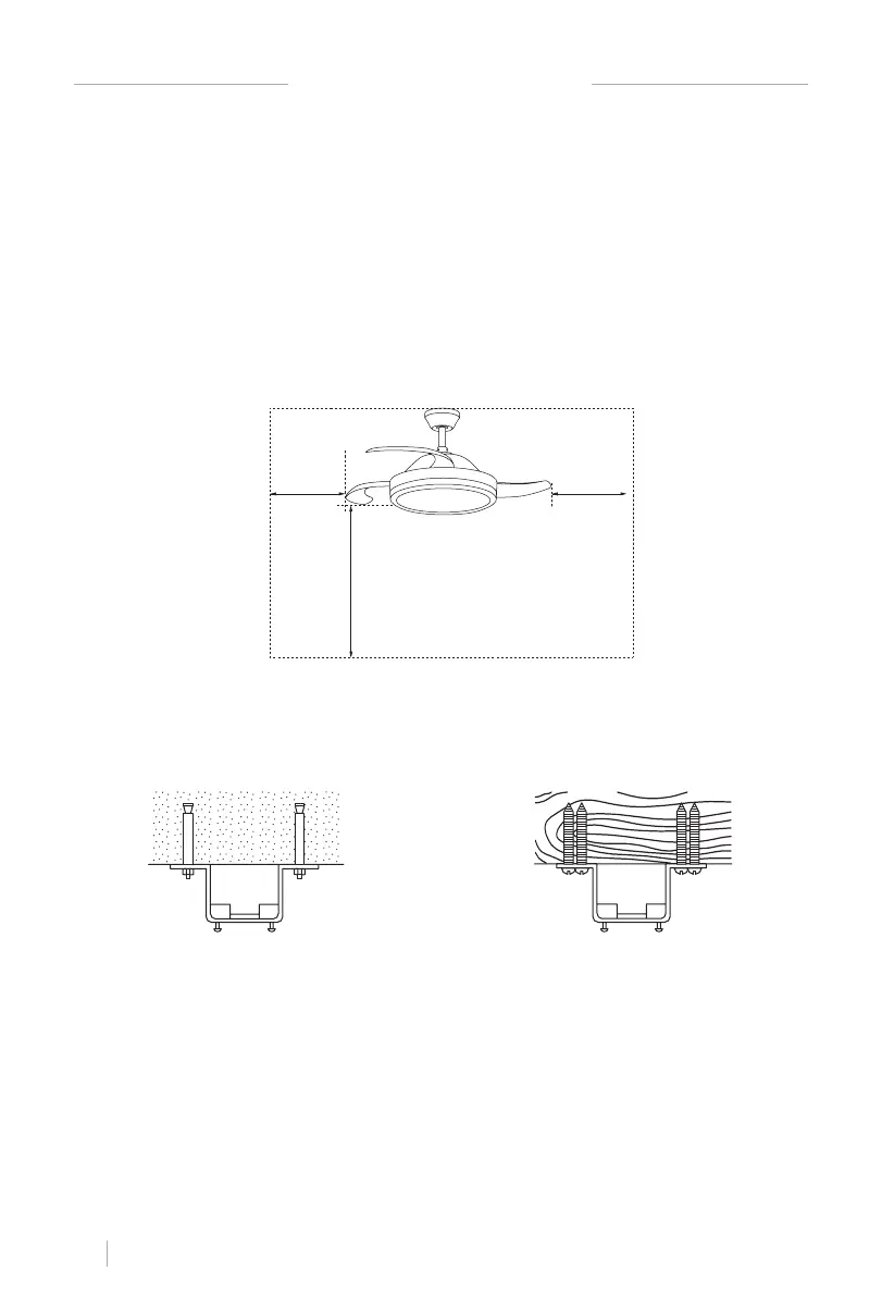 Platz, an dem Sie den Ventilator aufhängen, eine Mindesthöhe der Flügel von 2,3 m über