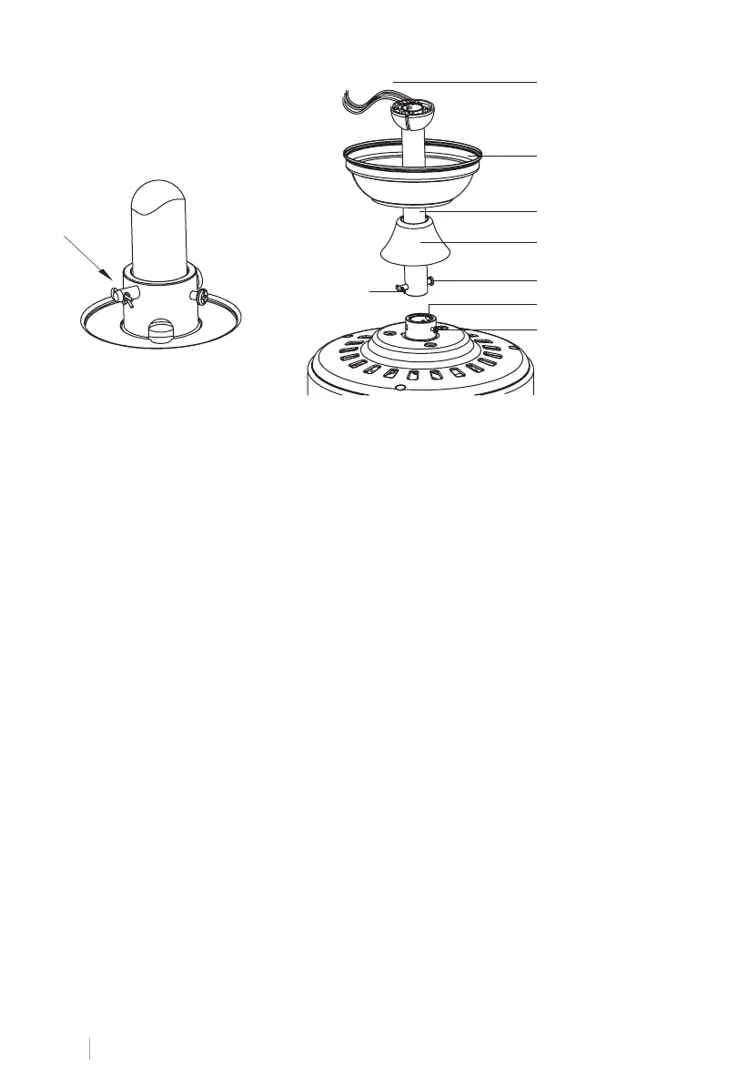 • Si desea extender la longitud de suspensión de su ventilador, debe quitar la bola colgante