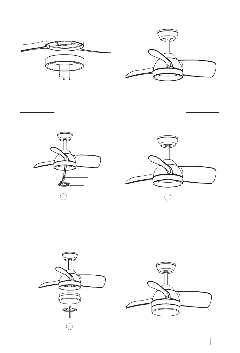 Accrochez la plaque de connexion au bas du ventilateur en insérant les têtes de vis dans les