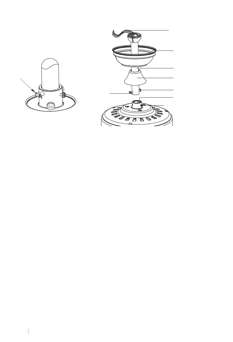 • Zur Verlängerung der Hängelänge des Ventilators entfernen Sie die Kugel mitgelieferten