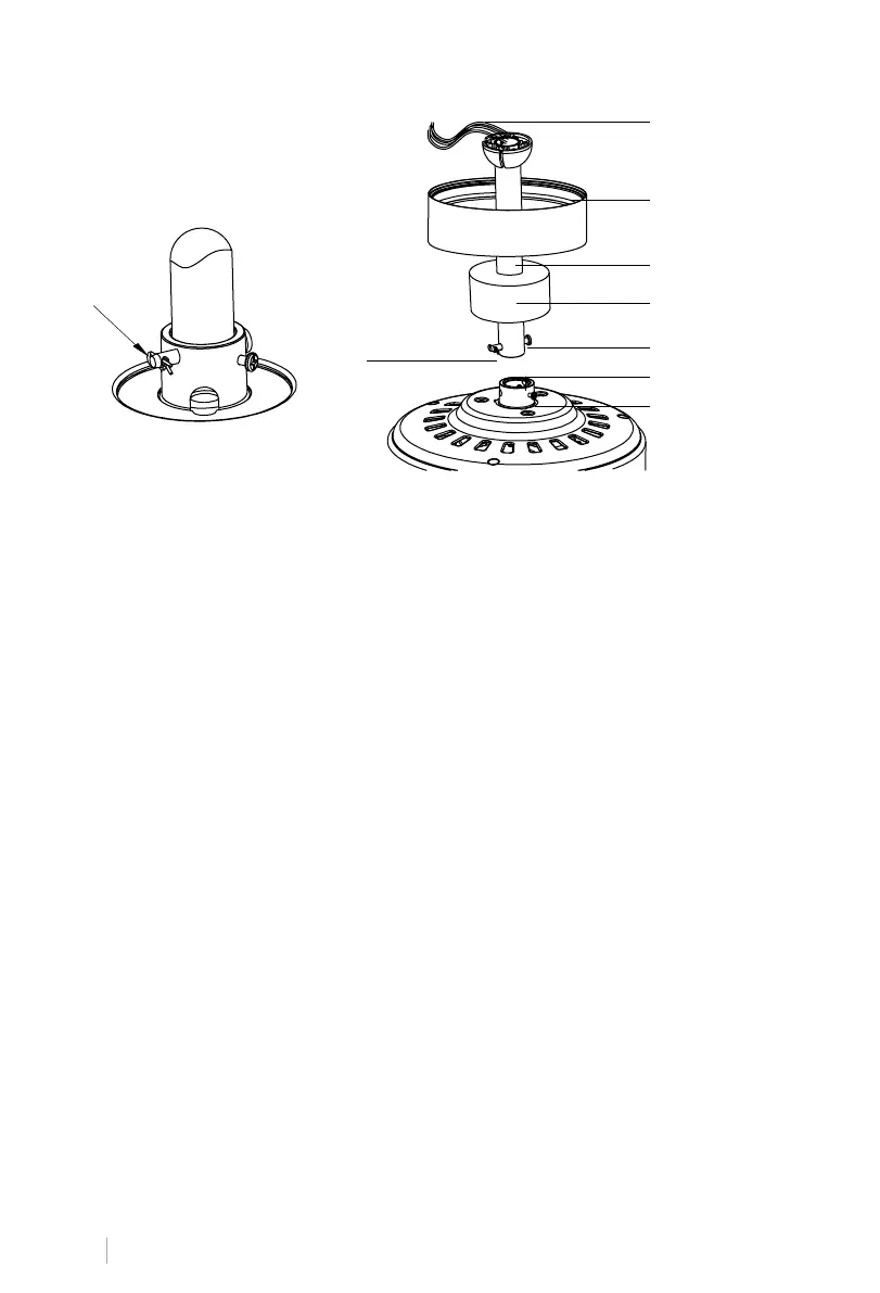 • Si quiere extender la longitud de cuelgue de su ventilador, retire la bola de la barra de