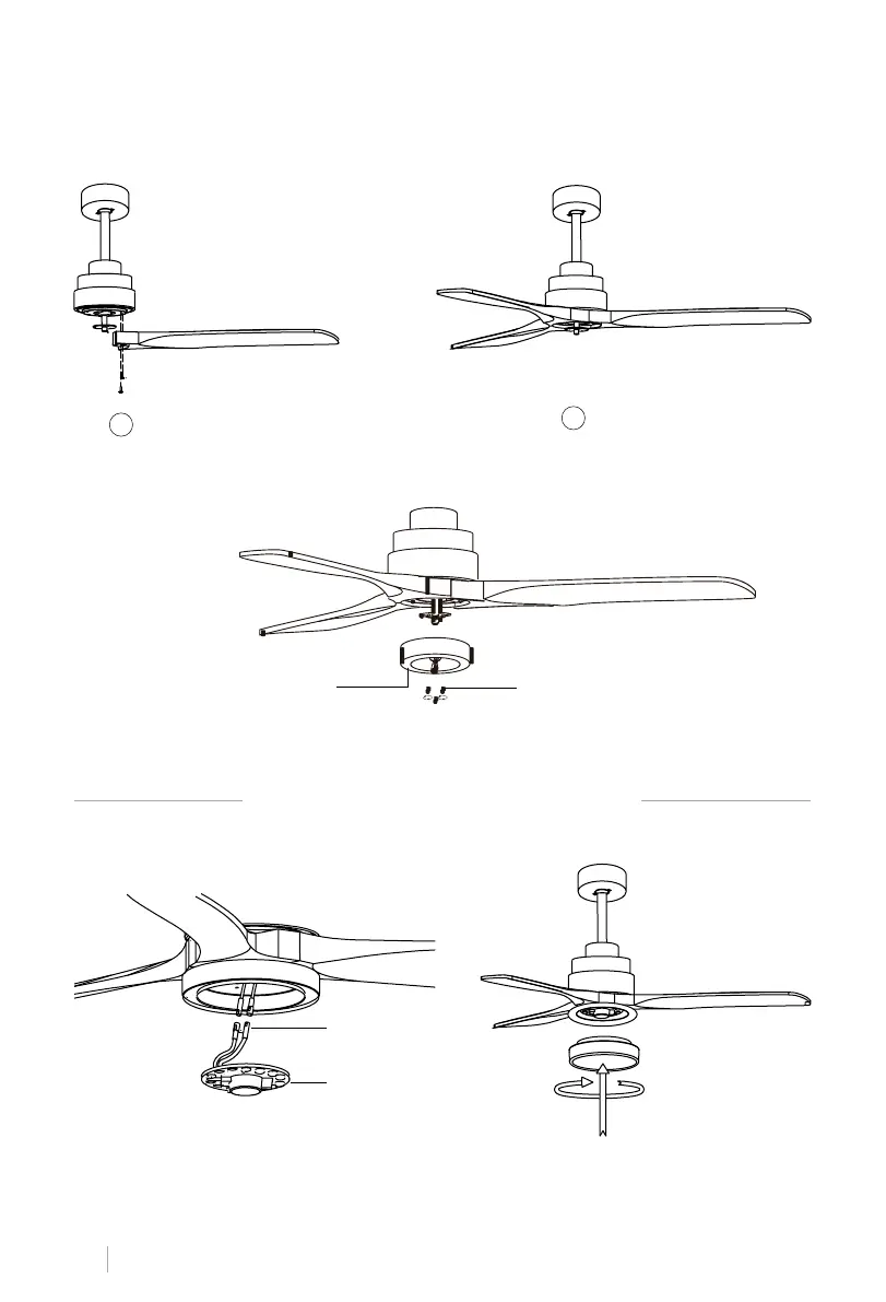 Consejo: Para ahorrar tiempo, puede colocar las arandelas en cada tornillo antes de instalar las aspas.