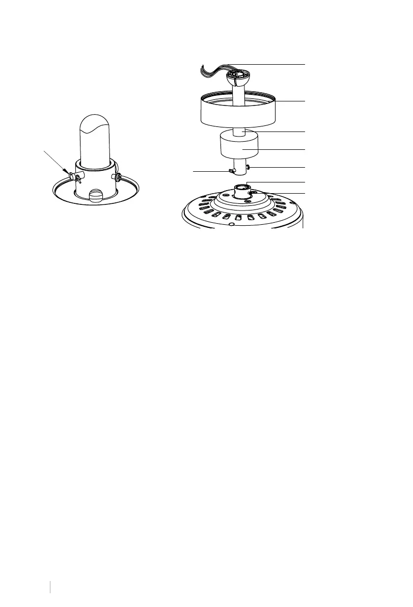 • Si vous souhaitez augmenter la longueur de suspension du ventilateur, retirez la boule de