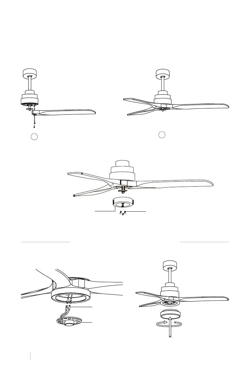 Haken Sie die Platte an der Unterseite des Lüfters ein, indem Sie die Schraubenköpfe in die