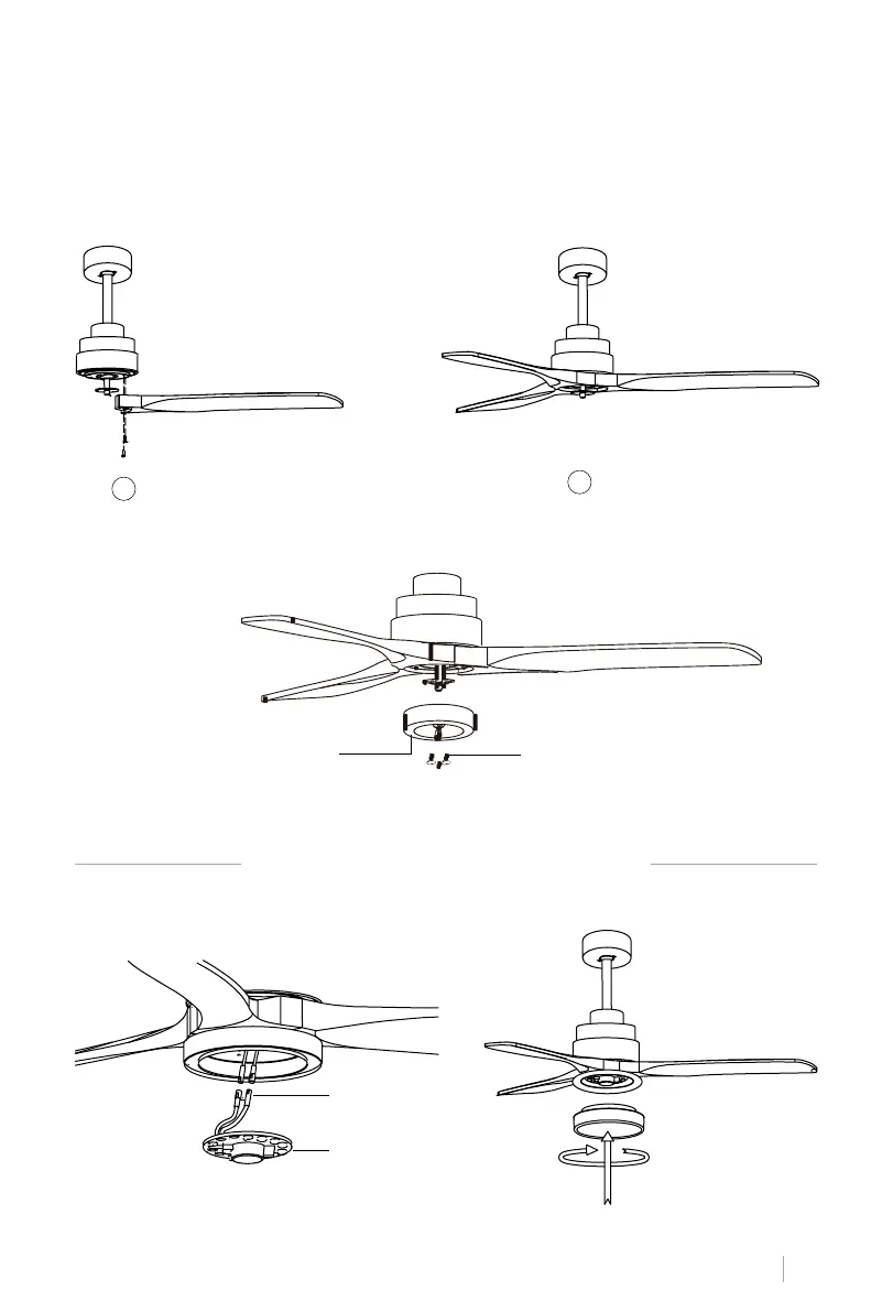 Haak de plaat aan de onderkant van de ventilator door de schroefkoppen in de daarvoor bestem-