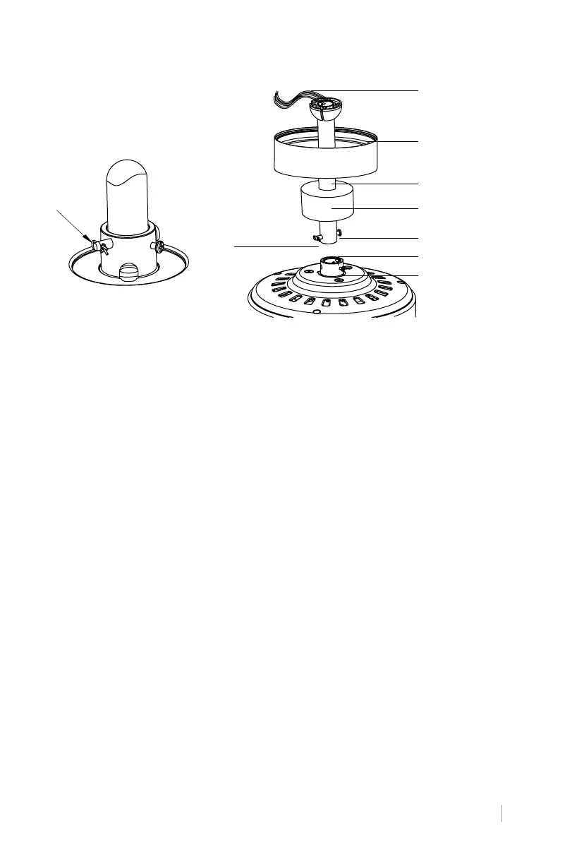 • Tread electrical wires through the downrod and pull extra wire slack from the upper end