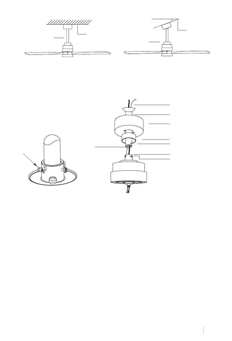 • Tread electrical wires through the downrod and pull extra wire slack from the upper end
