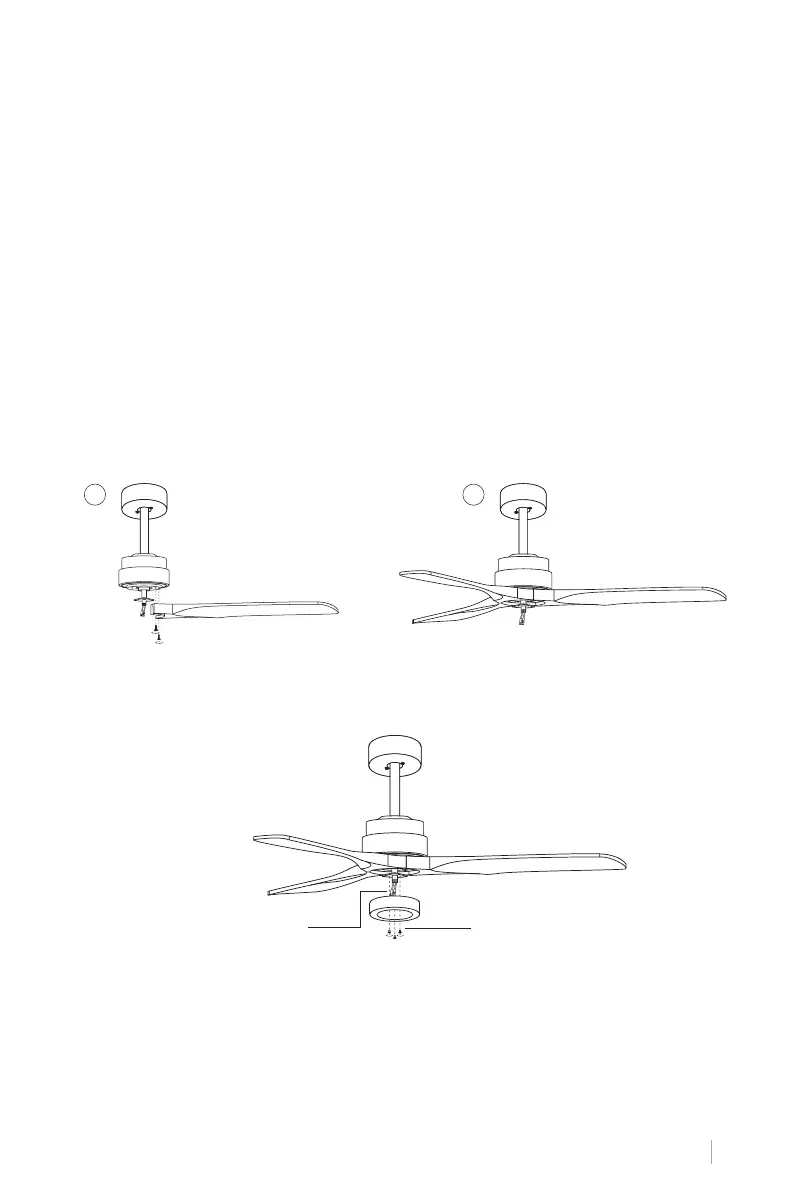 Enganche la placa a la parte inferior del ventilador insertando las cabezas de los tornillos