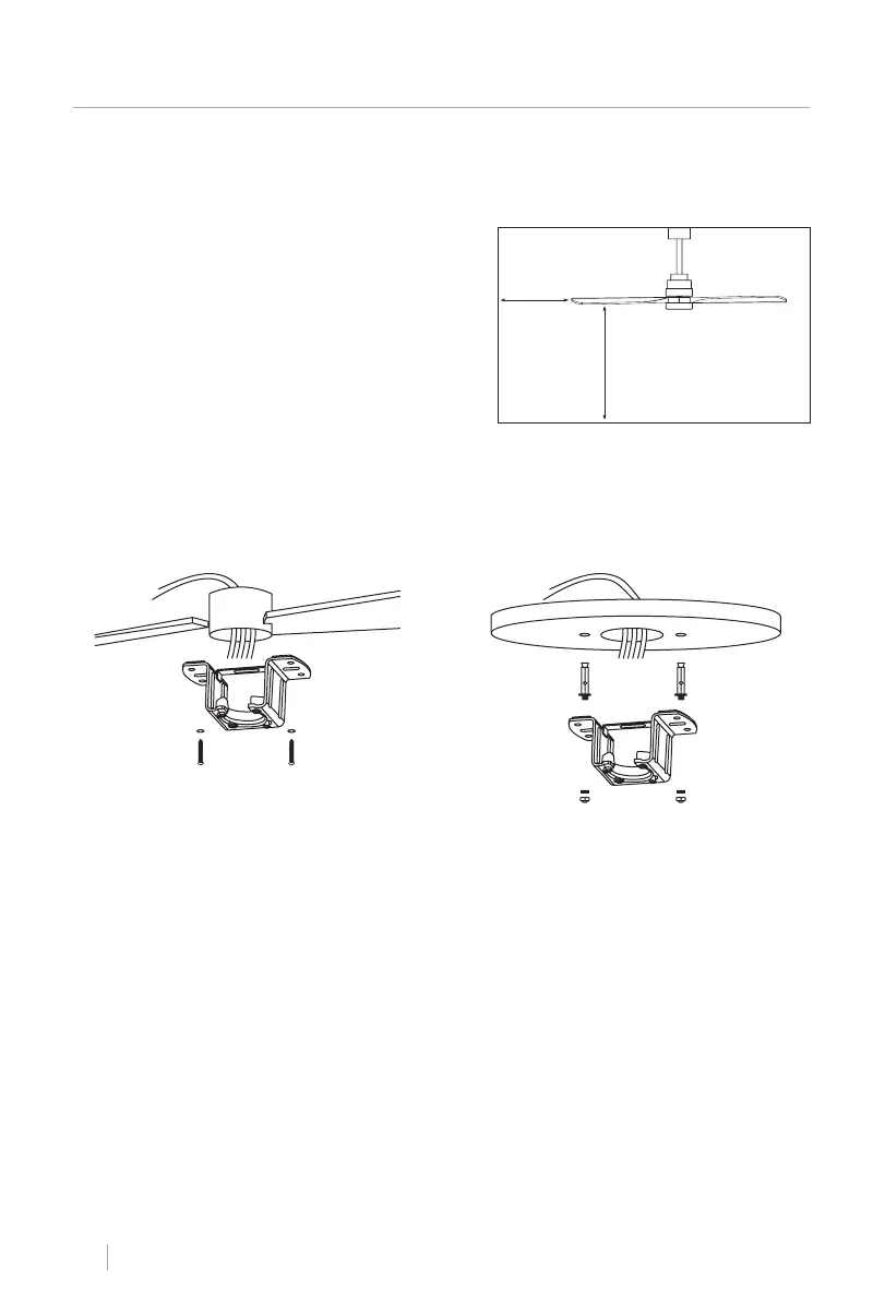 • Verique a instalação correta do suporte antes de pendurar o ventilador. O suporte de