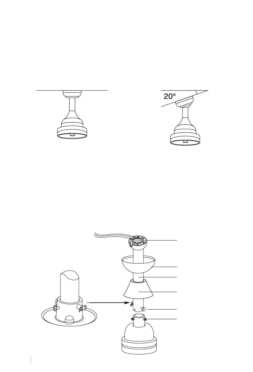 Leid de ventilatordraden van de motor, door de ophangstang, decoratieve afdekking en luifel