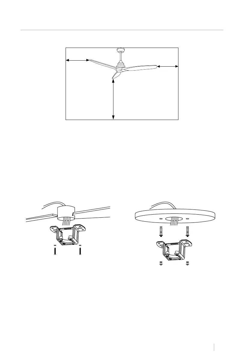 blades to be 2.3 m or more from the oor and 76 cm from the nearest wall or obstacle.