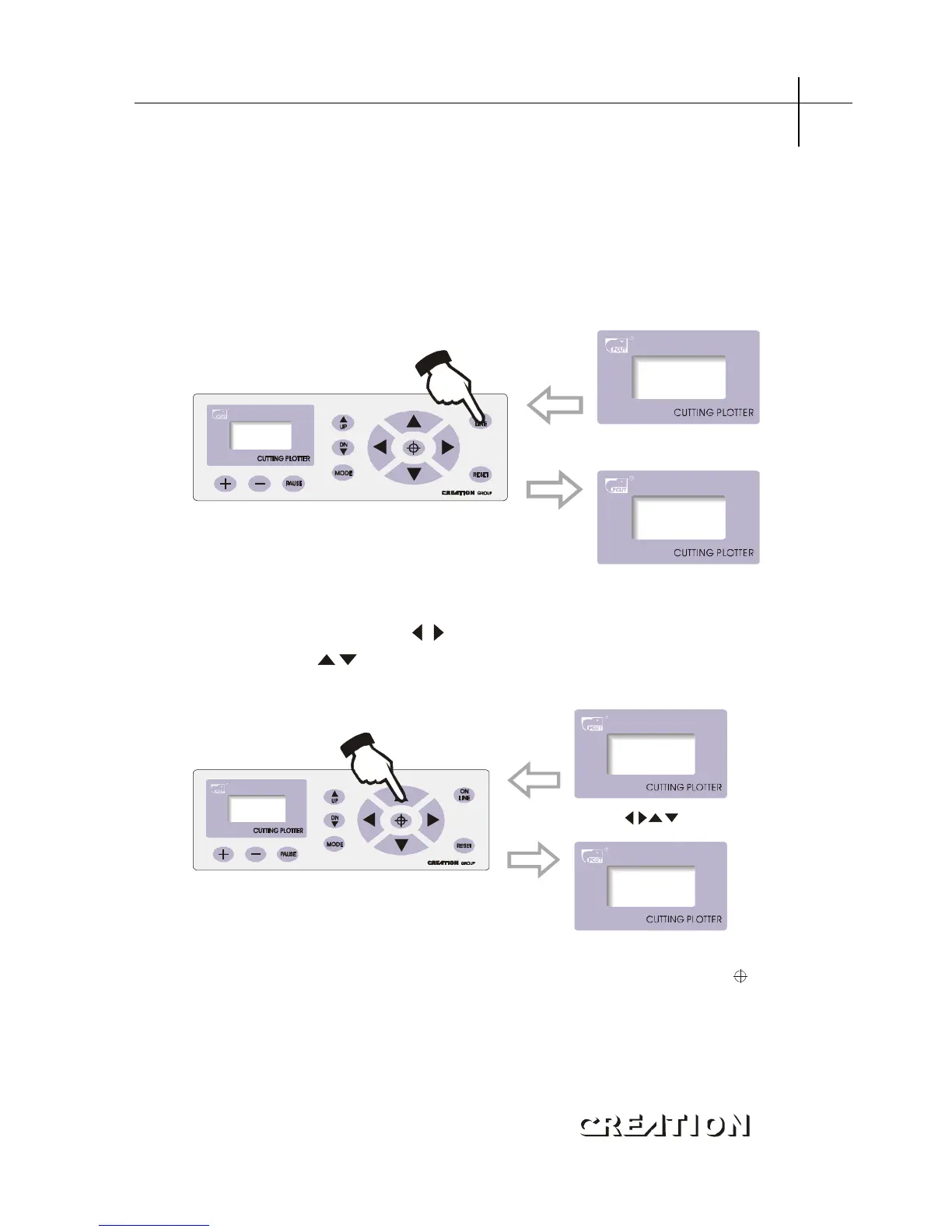 When the cutter starts reset, it becomes in online state. Press ON LINE to switch